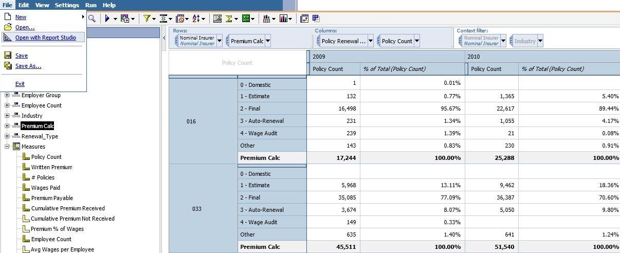 (Note: it is hoped that Cognos will improve the inter-Studio workflow in future versions, to enable Analysis Studio view to be opened directly into Business Insight Advanced, either from within Analysis Studio or from Cognos Connection)